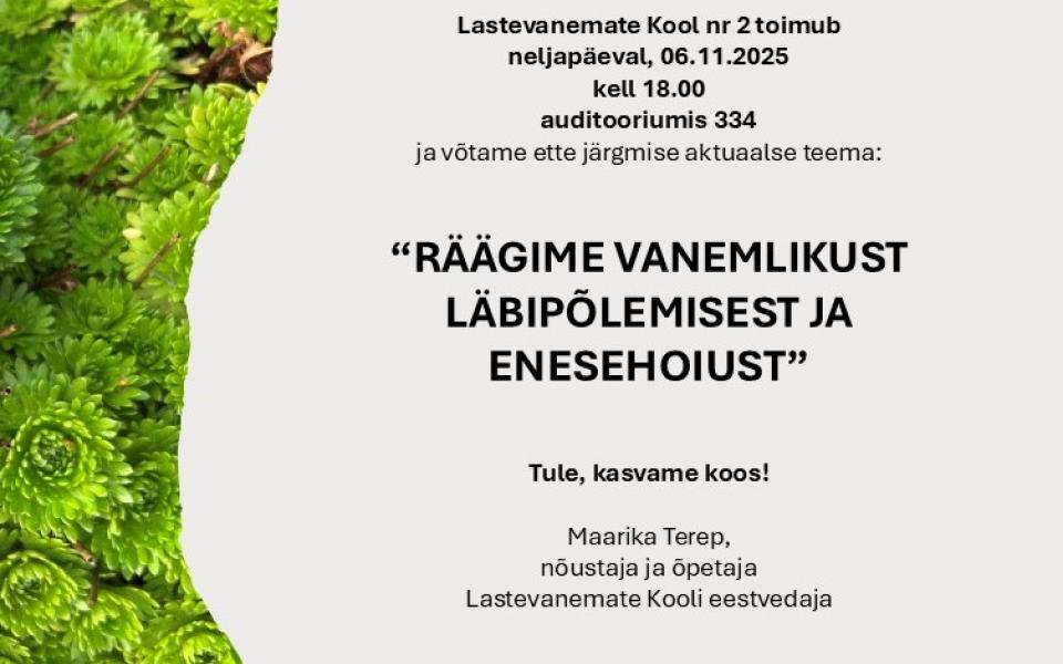 Lastevanemate kool nr2 06.11.2025 kell 18.00