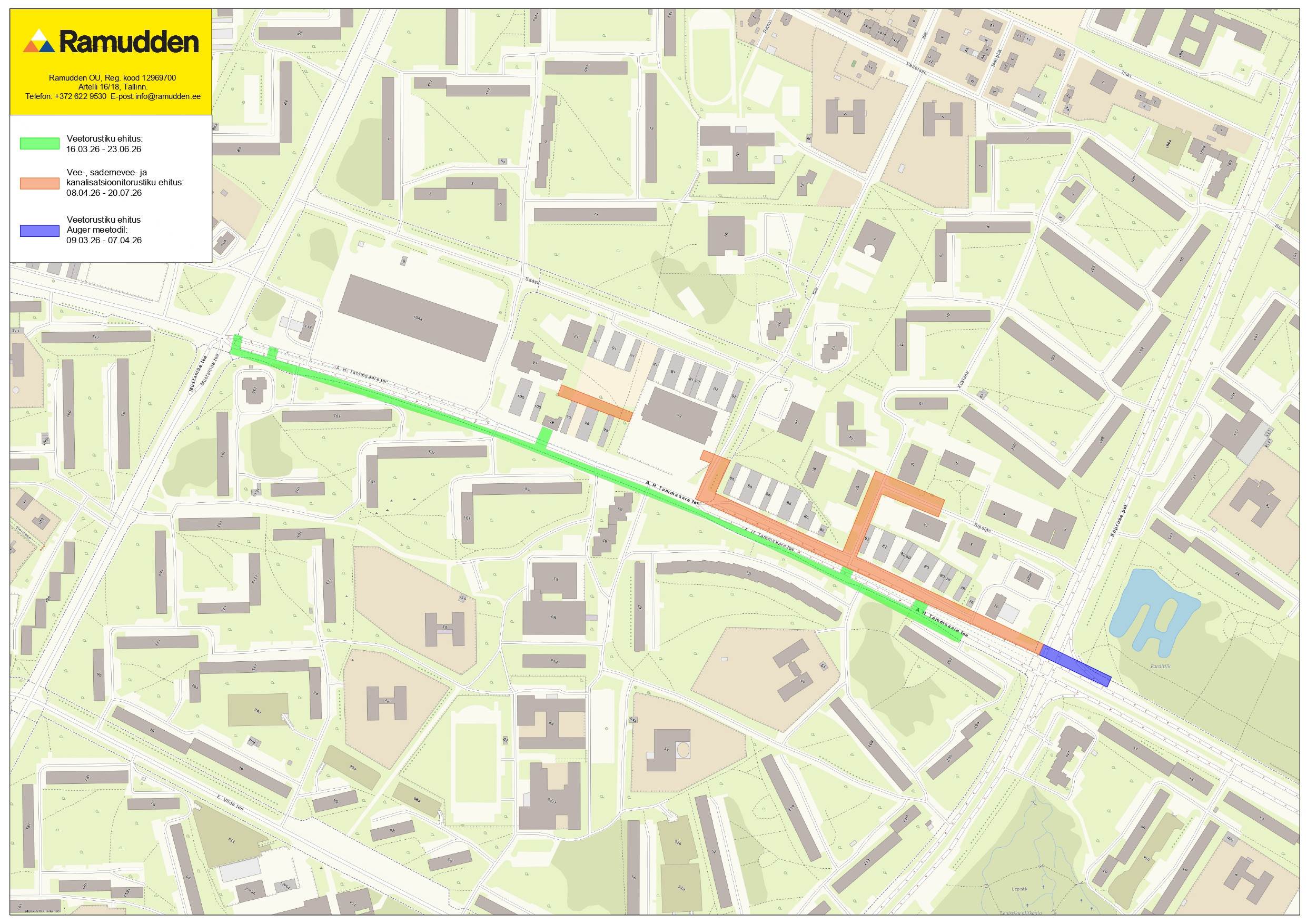 Anname teada, et ajavahemikul 09.03.2026–28.08.2026 toimuvad A.H. Tammsaare tee ühisveevarustuse ja -kanalisatsiooni torustike rekonstrueerimistööd (II etapp) lõigul Sõpruse puiestee kuni Mustamäe tee.