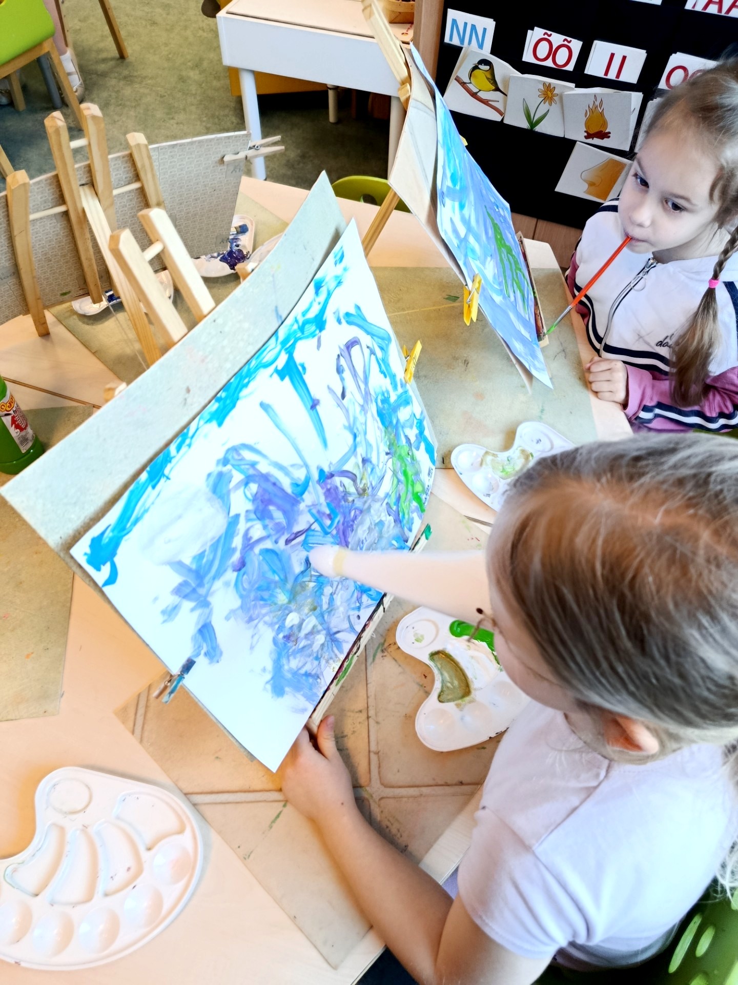 Jaanuari meeltekuu raames otsustasid Mõmmipere rühma lapsed järele proovida, kuidas oleks tore joonistada varvastega, suuga ja ninaga, teemal "TALVINE...