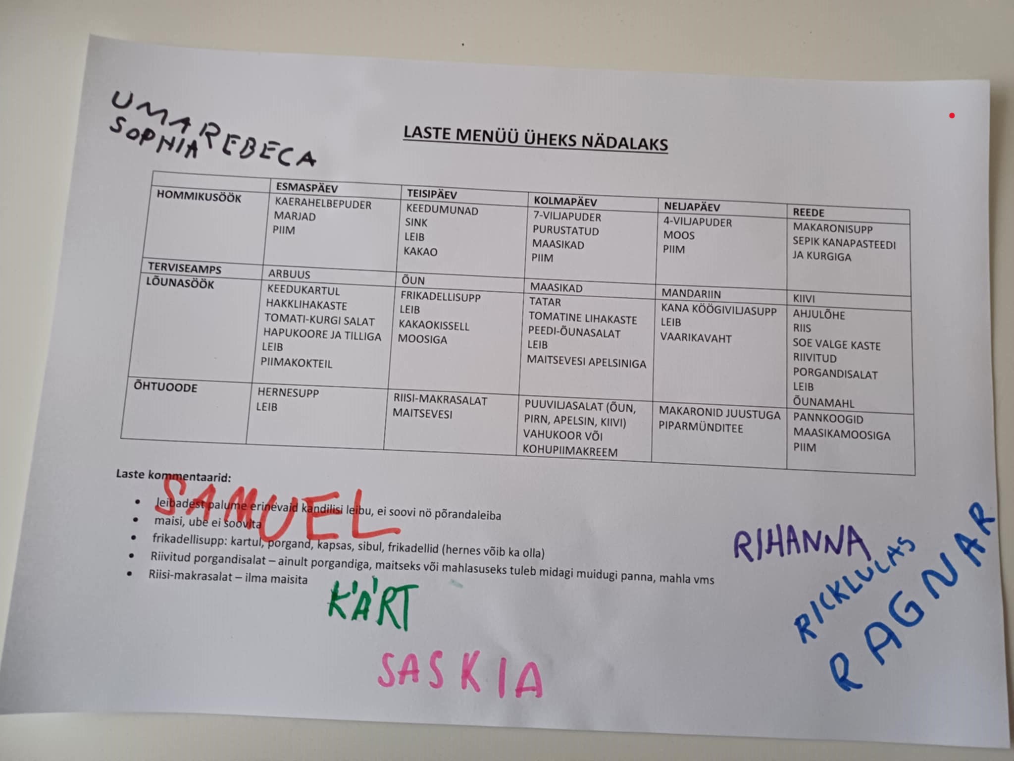 Mudilasnõukogu koostas menüü Sel nädalal kogunes meie lasteaia mudilasnõukogu, et arutleda menüü teemadel.
