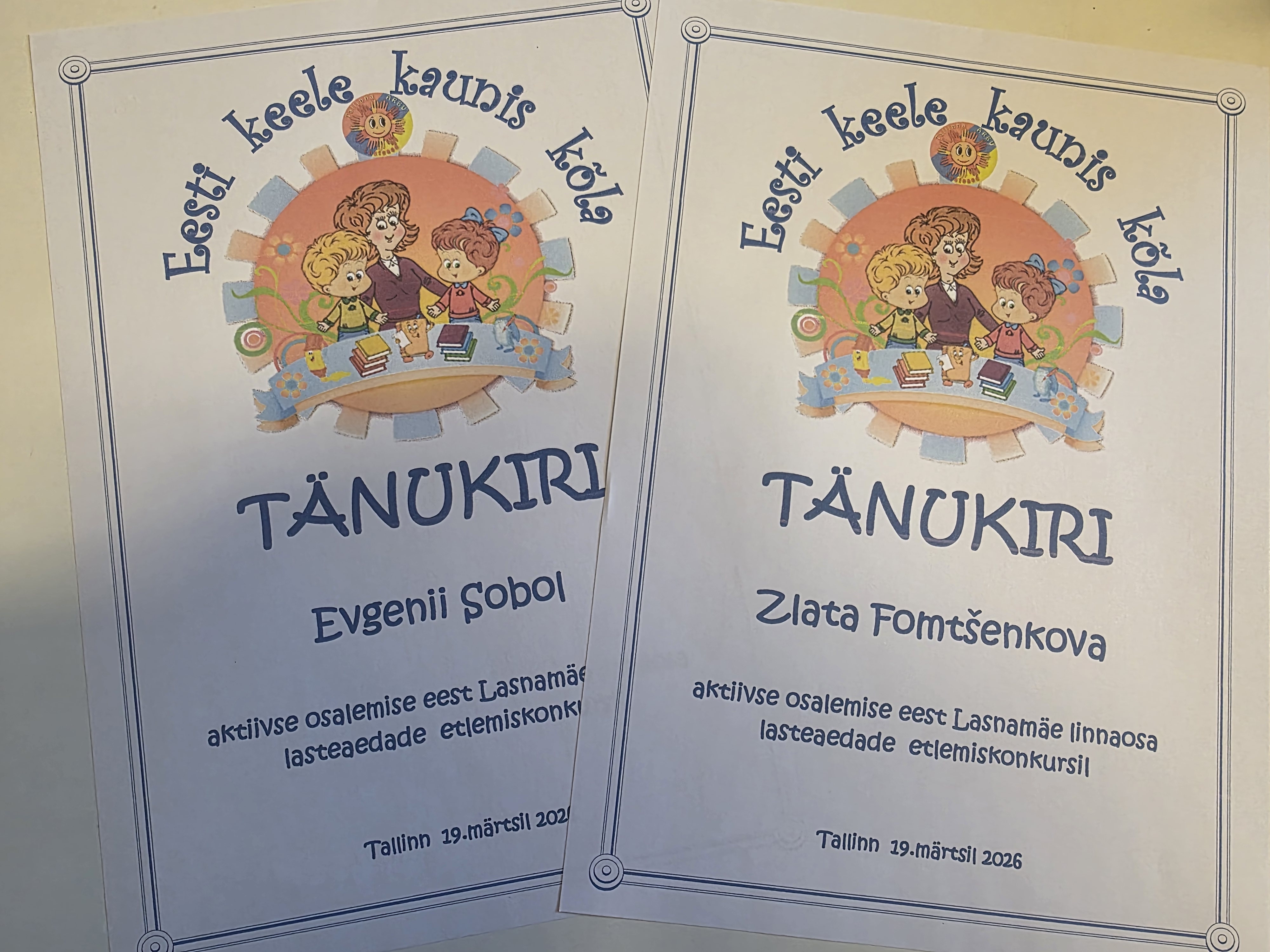 19.03.2026 toimus Lindakivi Kultuurikeskuses etlemiskonkursi „Emakeele kaunis kõla“ Lasnamäe voor. Meie lasteaeda esindasid Zlata ja Evgenii, kes said võitjateks lasteaia etlemiskonkursil.