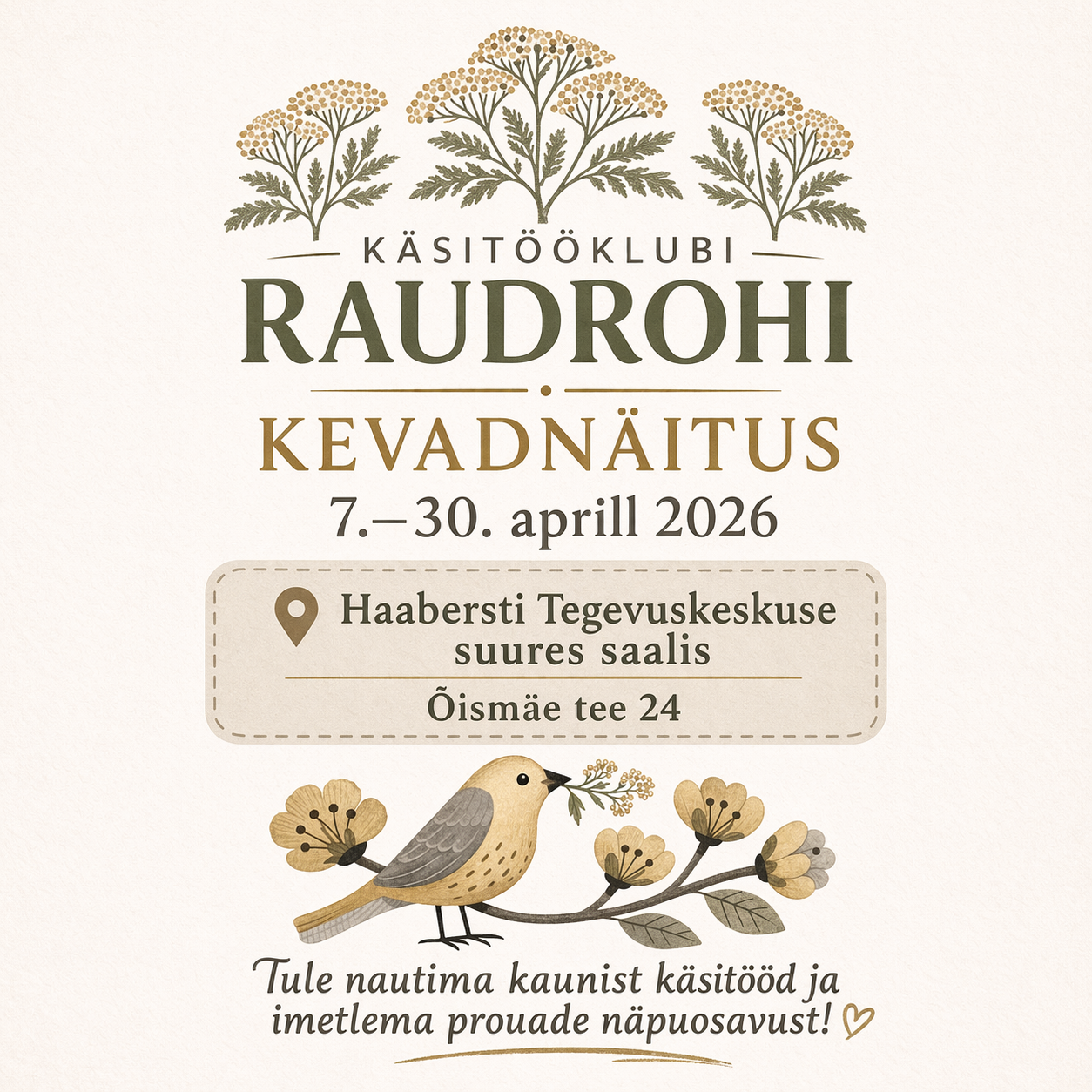 Haabersti Tegevuskeskuse päevakeskuses käsitööklubi Raudrohi kevadnäitus alates 7.aprill