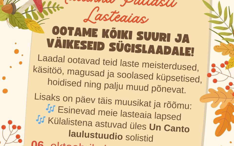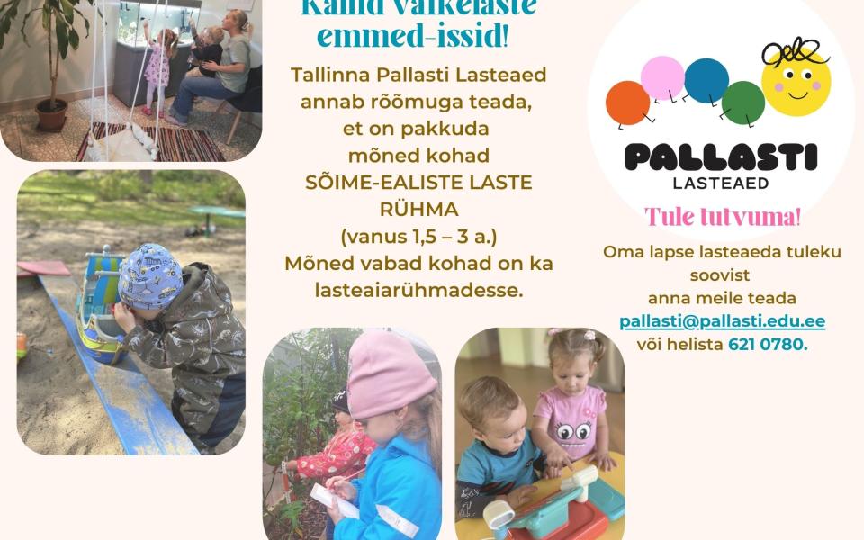 22 september Uuudis neile lastele, kes veel ei käi lastesõimes või lasteaias, kuid tahaksid käia! Meie lasteaeda mahub veel mõni vahva laps!