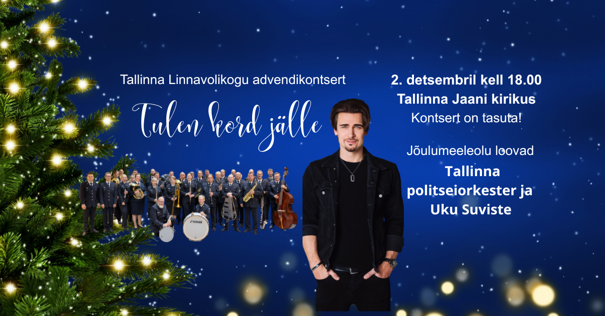 Таллиннское городское собрание приглашает всех горожан на адвент-концерт «Tulen kord jälle», который состоится во вторник, 2 декабря, в 18:00 в церкви Святого Иоанна (Jaani kirik) Праздничную атмосферу концерта создадут Таллиннский полицейский оркестр и солист Уку Сувисте.